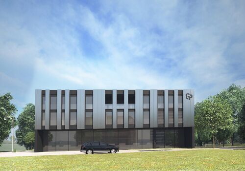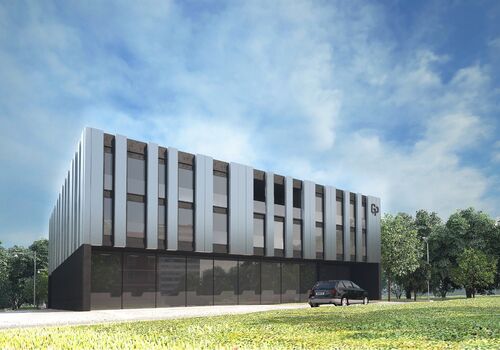 Bei dem eingereichten Entwurf handelt es sich um ein modernes Gewerbegebäude, das durch seine Strichcode-Fassade einen hohen Wiedererkennungswert hat und somit zur Adressbildung im Gewerbegebiet von Karlsdorf-Neuthard beiträgt. Das Gebäude strahlt sowohl für seine Nutzer als auch für seine Besucher eine hohe Wertigkeit aus.